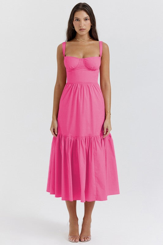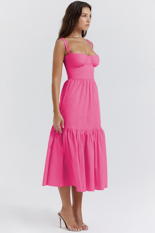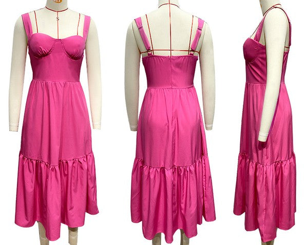 Fuchsia Sweetheart Neck Sleeveless Maxi Dress