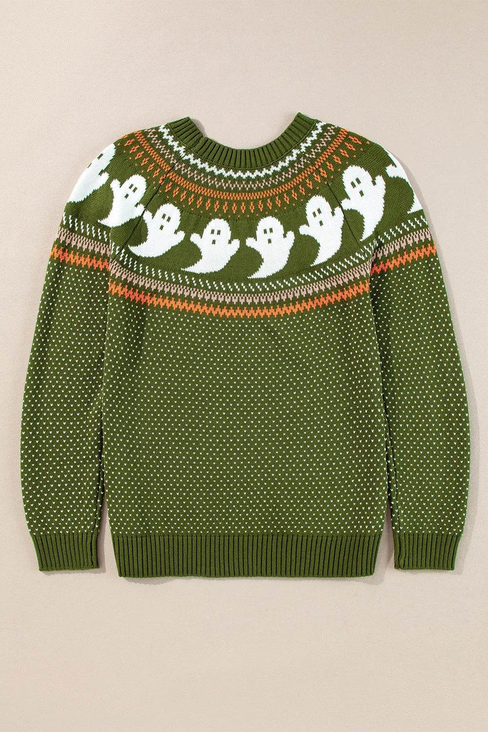 Ghost Round Neck Long Sleeve Sweater - Halloween Knit Top