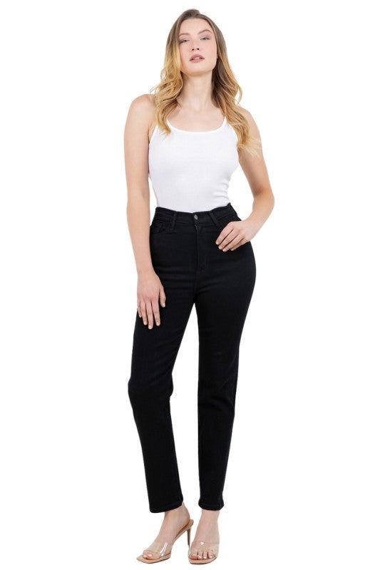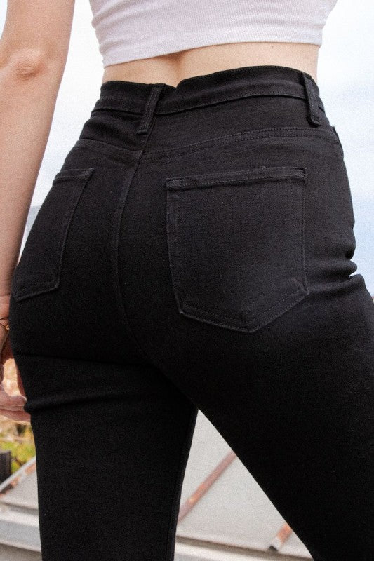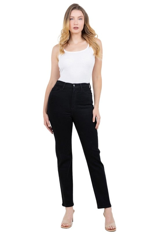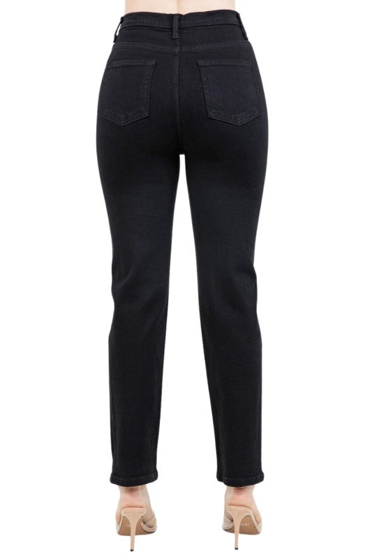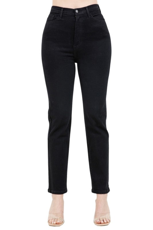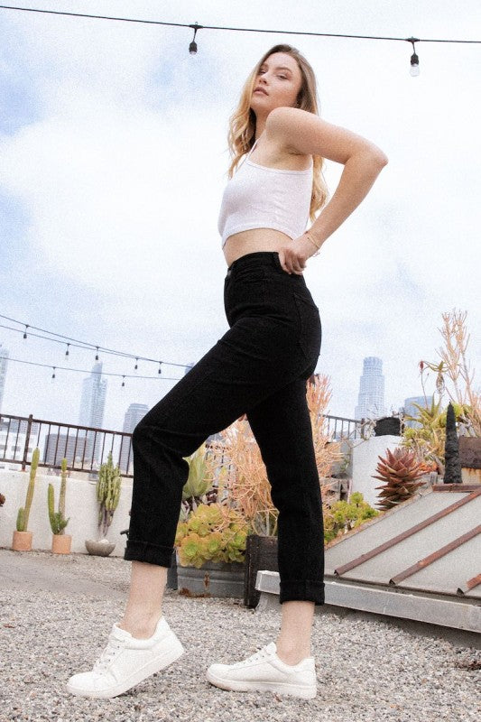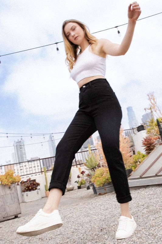 Elevate your everyday style with our Essential High-Waisted Mom Jeans, designed with a flattering 12-inch rise for a classic silhouette that hugs your curves in all the right places.Crafted in the USA using premium, durable fabrics, these jeans offer a soft yet structured feel that ensures long-lasting comfort and a perfect fit. The tapered leg and timeless black wash make them a versatile wardrobe staple-effortlessly styled up or down. Whether paired with sneakers or heels, these jeans are your go-to for confident, casual cool.