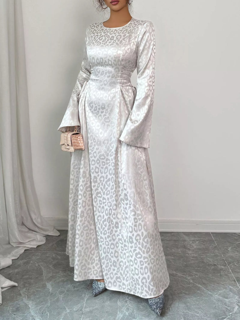 Leopard Maxi Dress - Lace-Up Long Sleeve Gown