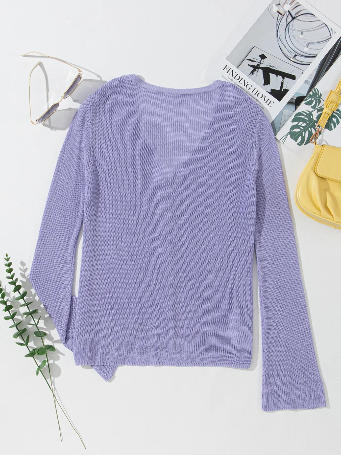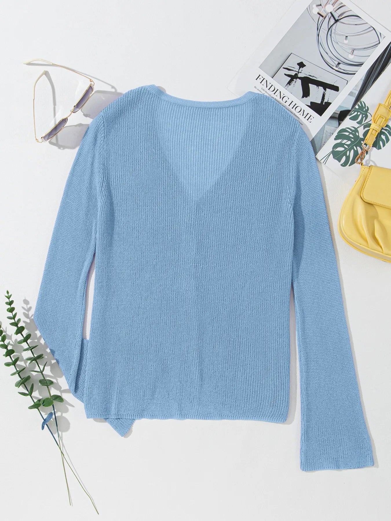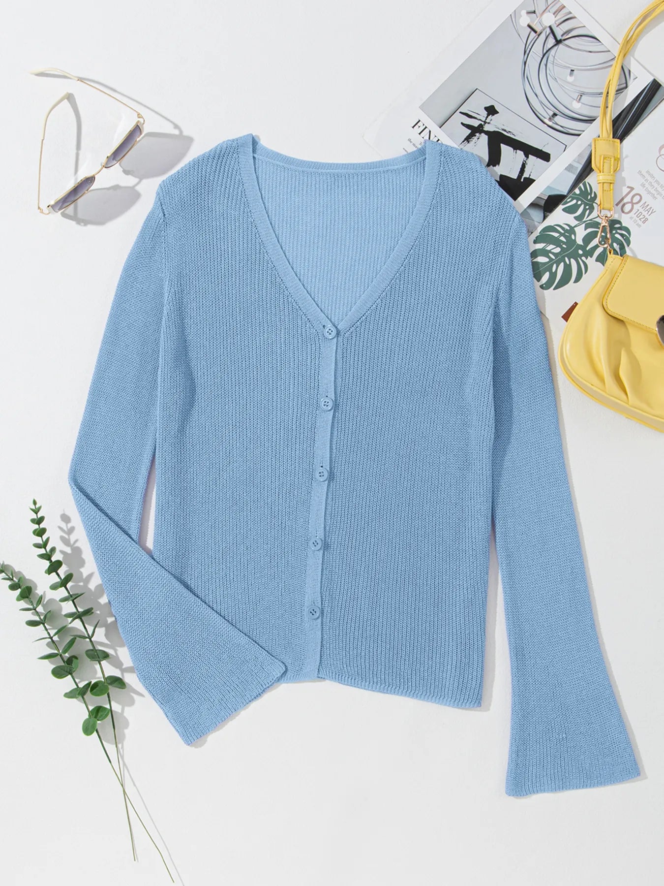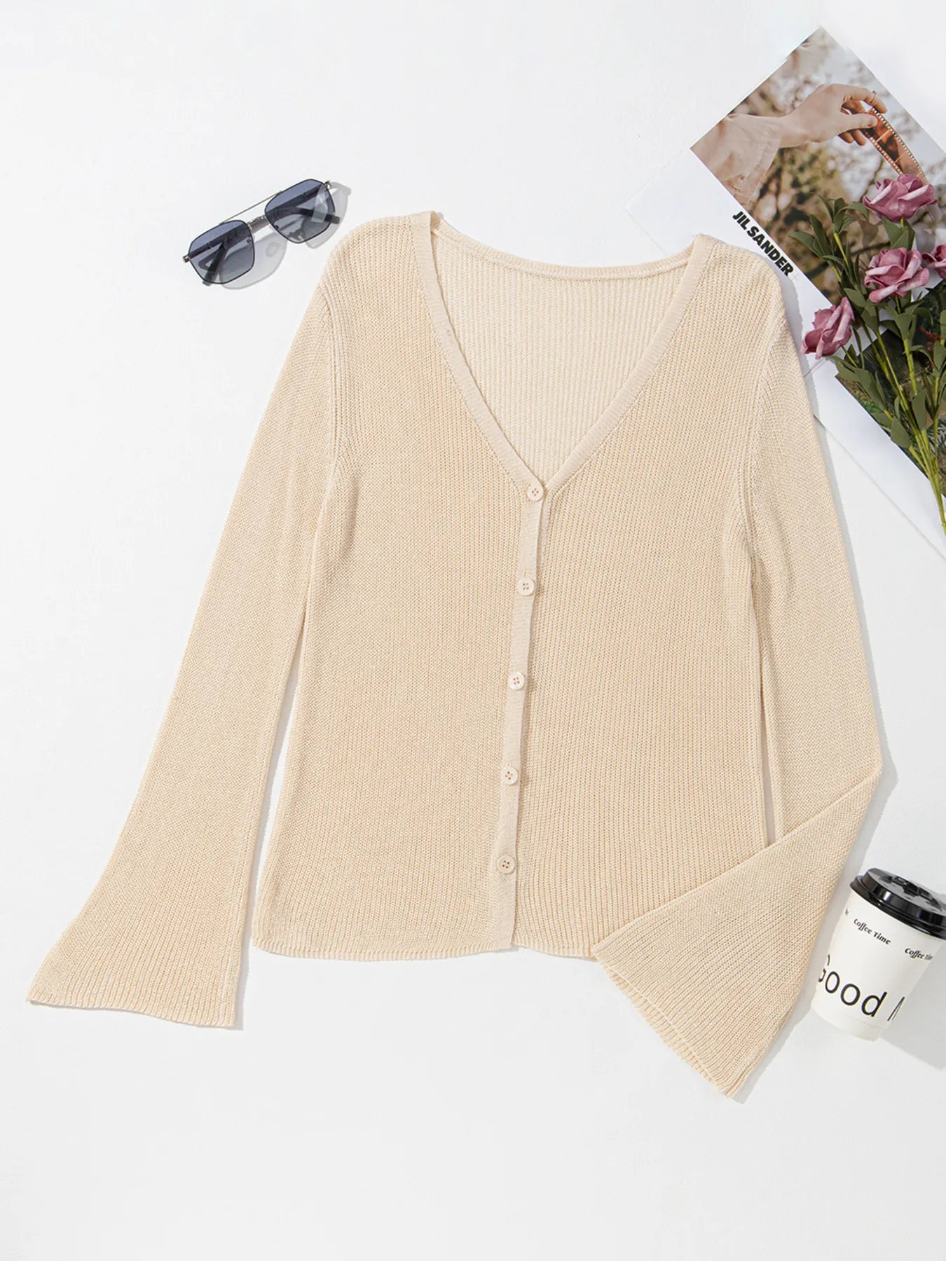 Lightweight V Neck Button Front Bell Sleeve Cardigan