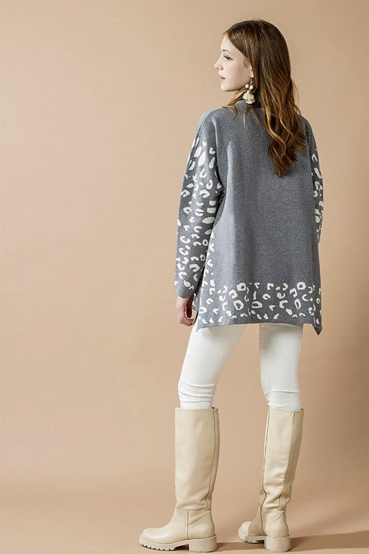 Mock Neck Leopard Print Sweater - Oversized Tunic Top