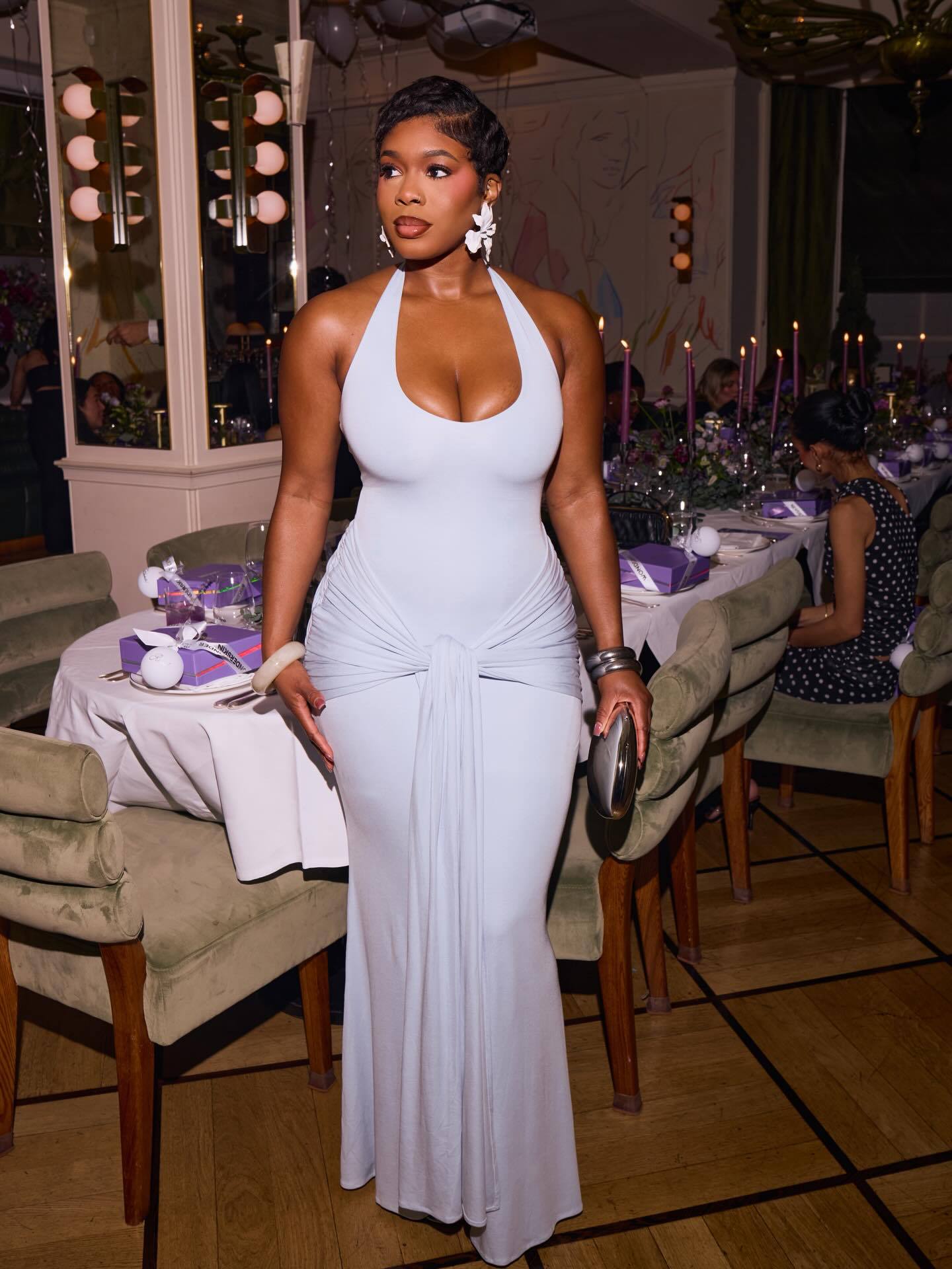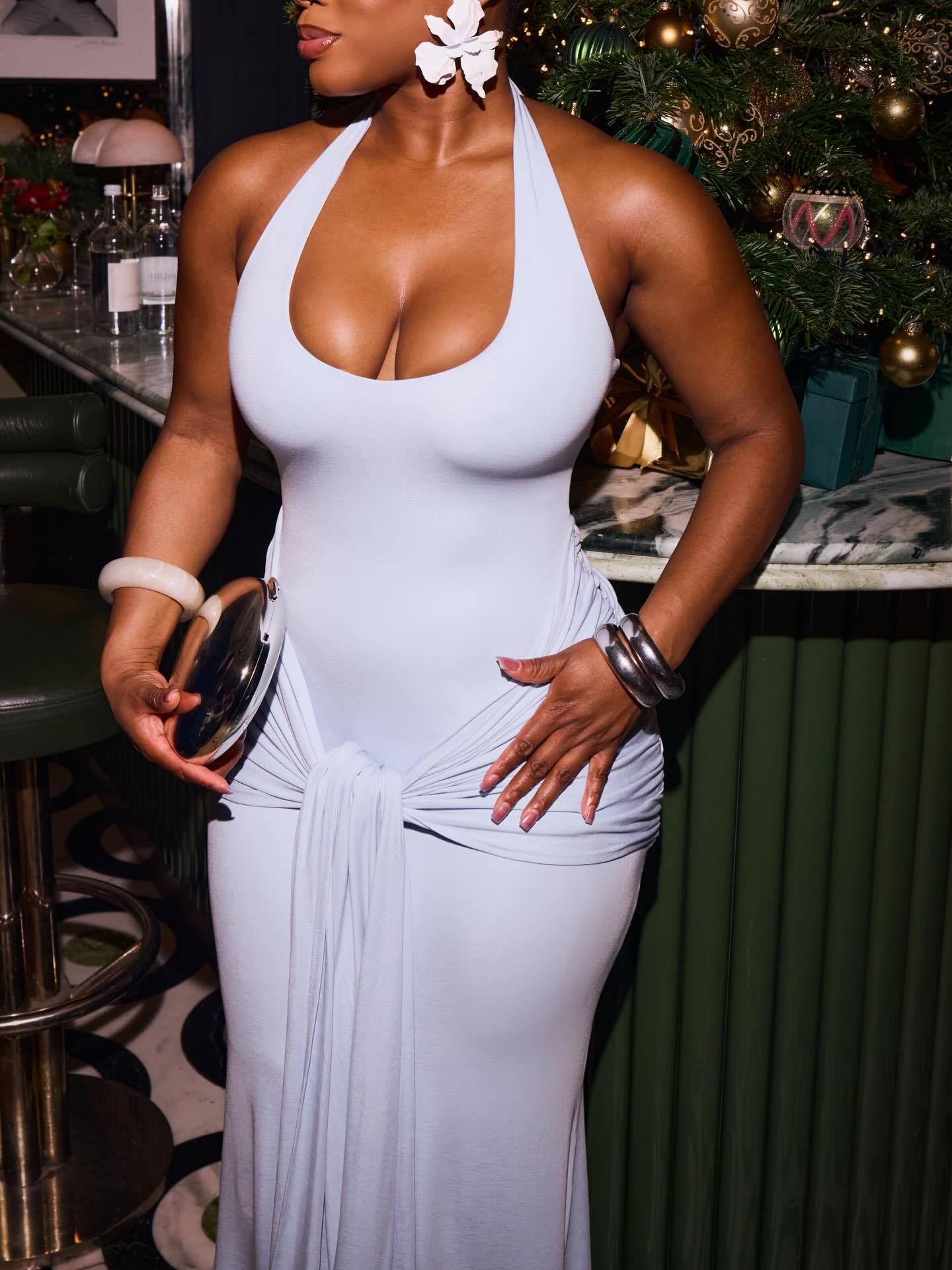 The open back detail is the showstopper of this dress, creating a beautiful silhouette that highlights your figure while offering a hint of allure. The pleated fabric flows gracefully, allowing for easy movement and a flattering fit that hugs your curves in all the right places. Crafted from high-quality materials, this gown not only looks great but is comfortable enough for all-day wear. Whether you’re socializing at a glamorous event or enjoying an intimate dinner, the Open Back Pleated Dress is your perfect companion.