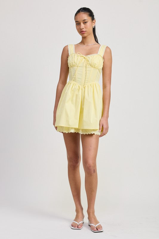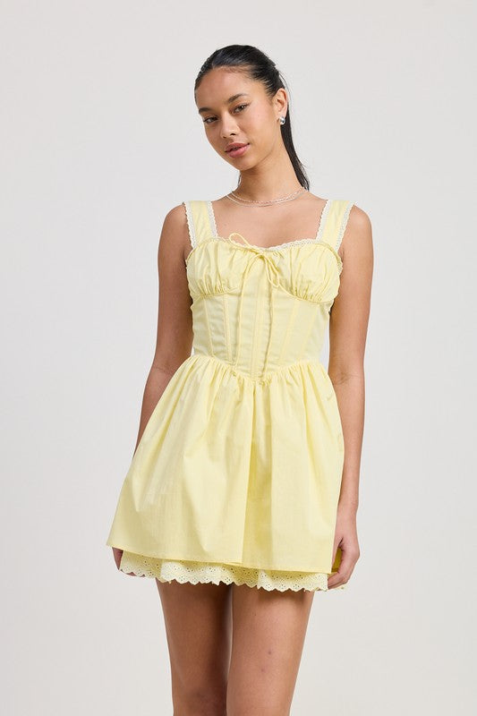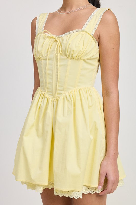 Pale Yellow Lace Corset Mini Dress