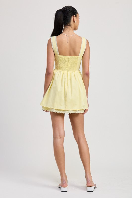 Pale Yellow Lace Corset Mini Dress 🌼✨