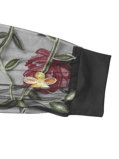 Perfee Embroidered V-Neck Long Sleeve Bodysuit