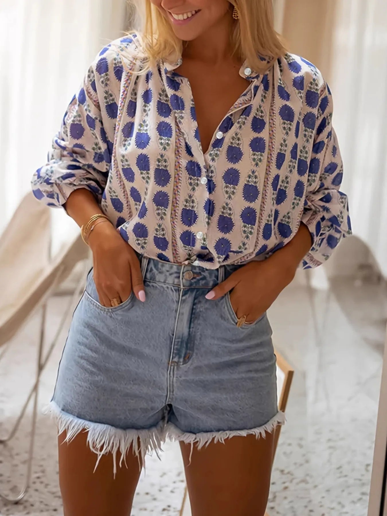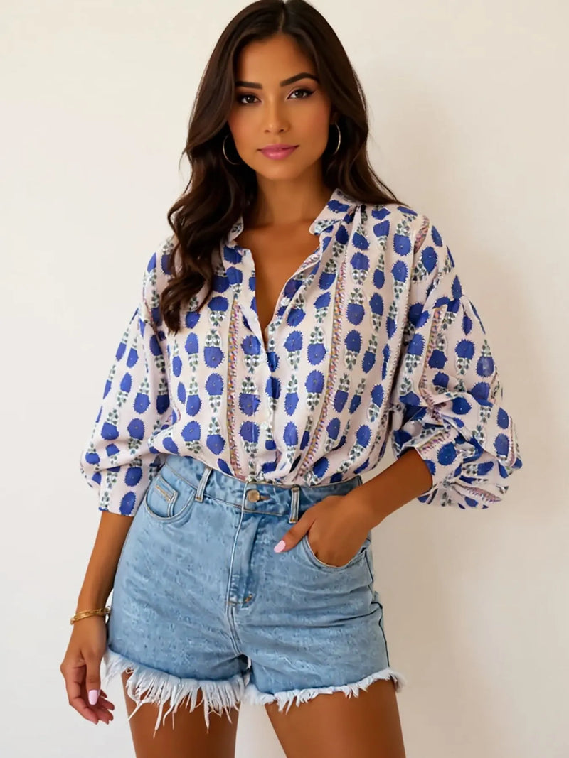 Printed Button Up Long Sleeve Shirt