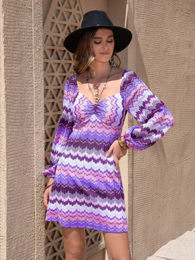 Printed Sweetheart Neck Balloon Sleeve Dress