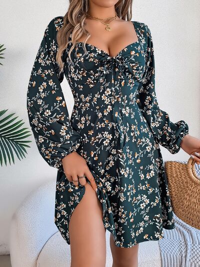 Printed Sweetheart Neck Balloon Sleeve Mini Dress