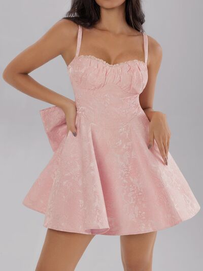 This Satin Mini Cami Dress with Bow offers a sleek and feminine look for any occasion. Made with soft and luxurious satin fabric, it features a delicate bow detail for added charm. The mini length adds a touch of flirtiness, perfect for a night out. Upgrade your wardrobe with this must-have dress.