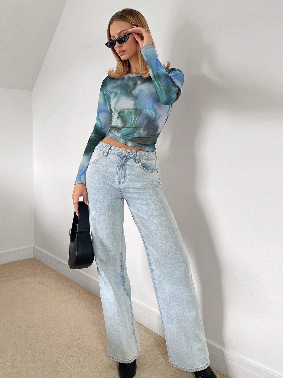 Tie-Dye Round Neck Long Sleeve T-Shirt