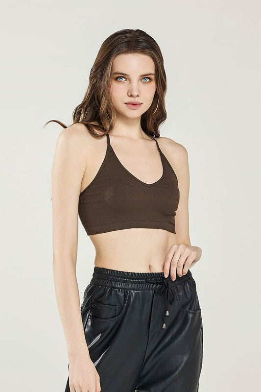 Engineered with stretch and supportive seamless textured knit fabric, this bralette adapts to your body's natural curves while maintaining its shape throughout the day. The triangle design provides gentle lift and support without the restriction of traditional underwire, while the ribbed knit texture adds visual interest and breathability. Available in multiple sophisticated colors, this versatile piece transitions seamlessly from loungewear to layering essential.
