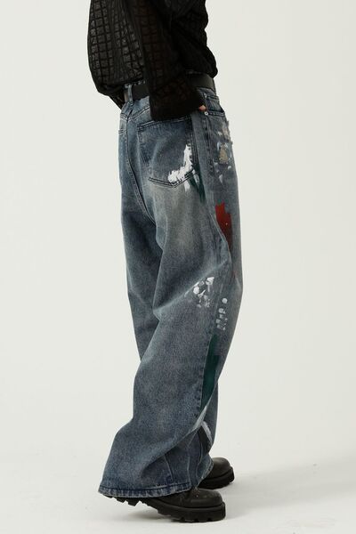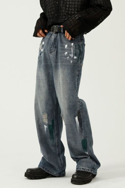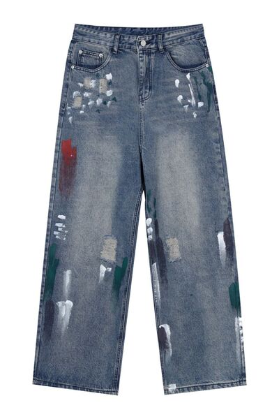 Get ready to rock a retro look with these Washed Distressed Wide-Leg Jeans! With a worn, vintage finish and a wide-leg fit, these jeans are perfect for a laid-back, cool vibe. Bring out your playful side and add some quirk to your wardrobe with these fun and funky jeans. (Jeans are not actually wide-legged, but let's just pretend they are, okay?)