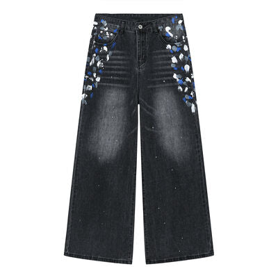 Expertly crafted for maximum comfort and style, our Watercolor Wide Leg Jeans with Pockets are a must-have addition to your wardrobe. The watercolor design adds a unique touch while the wide leg cut ensures a flattering fit. Plus, with functional pockets, these jeans offer both fashion and functionality.